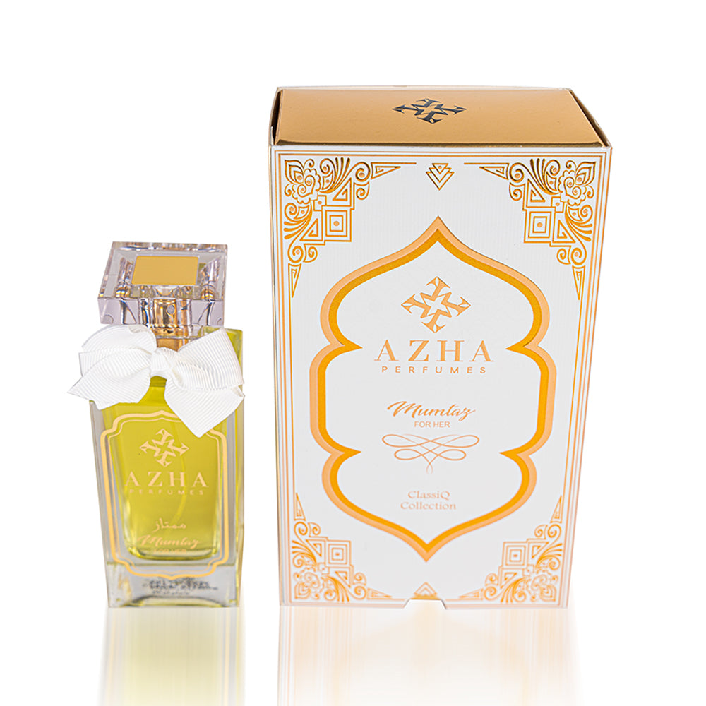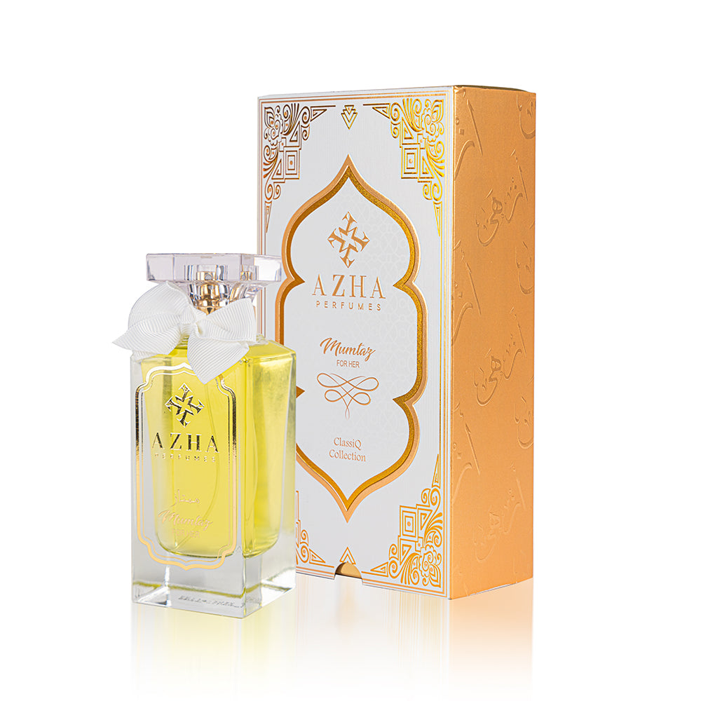 Radiate elegance with Mumtaz from the Classiq Collection. This captivating fragrance opens with a vibrant blend of pear blossom, mandarin, and red berries, flows into a floral heart of jasmine, gardenia, and orange blossom, and concludes with a sweet and patchouli-infused base. A scent as remarkable as you are.