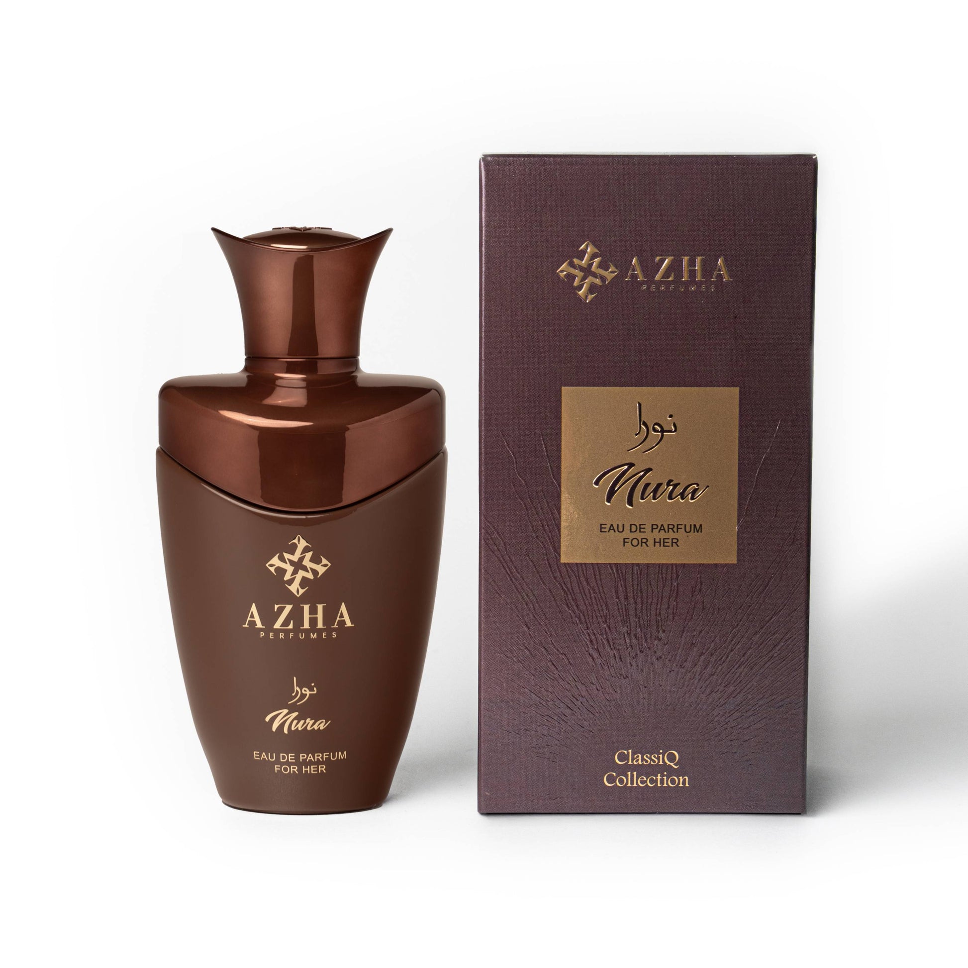 Nura is for the woman who owns every room she walks into — magnetic, confident, and undeniably modern. A rich blend of juicy fruits, sweet praline, and earthy oud wrapped in warmth.